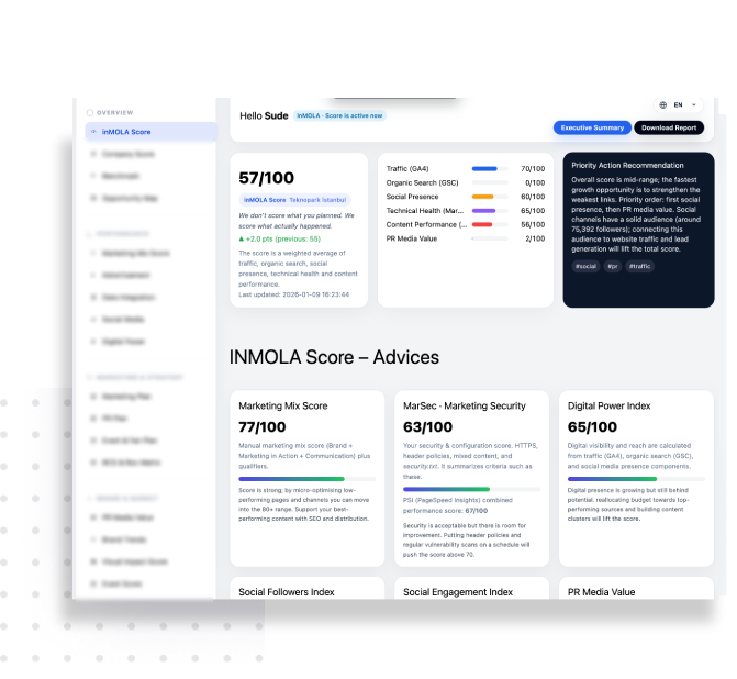 The performance tool breaks down marketing, sales, brand, and communication results into clear, measurable insights.