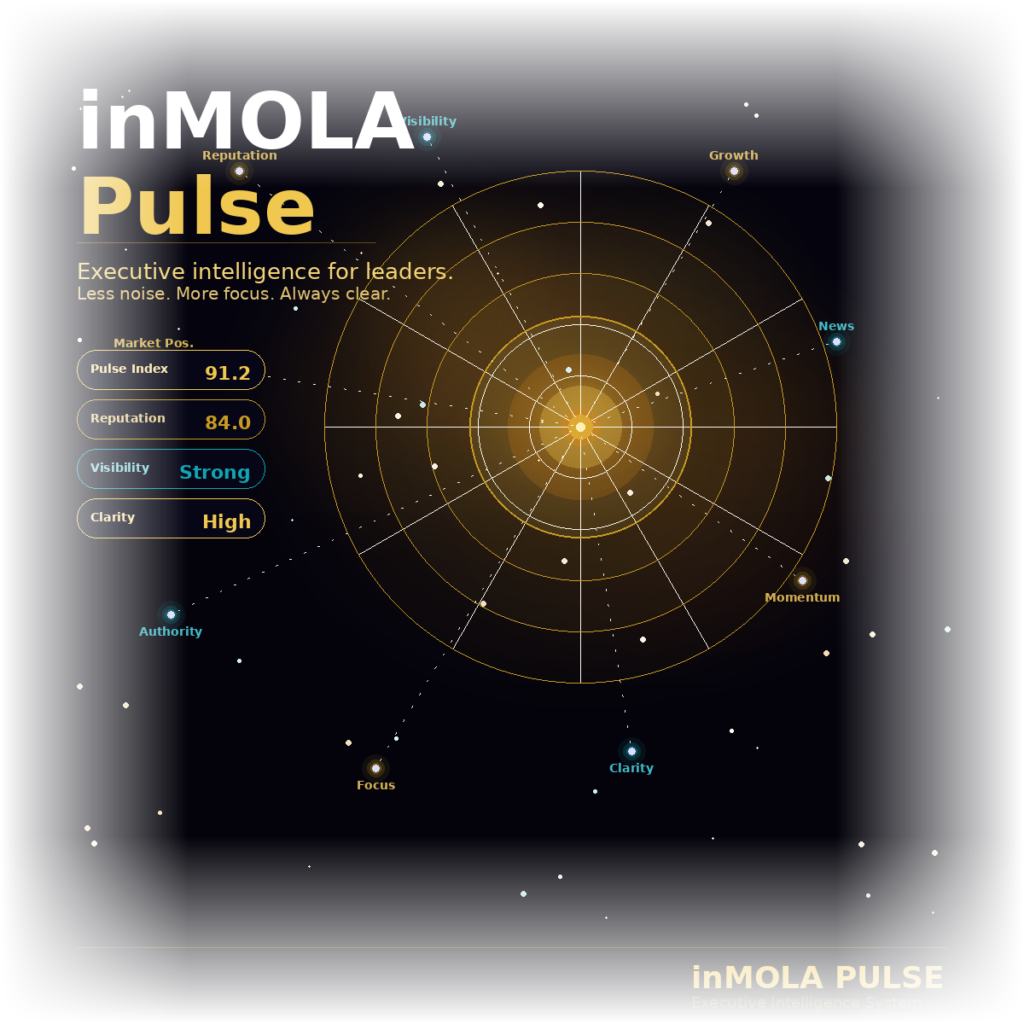 An executive intelligence system built for leaders who make decisions, not reports. It transforms complex market signals into clear, actionable clarity — covering reputation, visibility, growth momentum, and industry news in one unified view. Less noise. More focus. Always one step ahead.